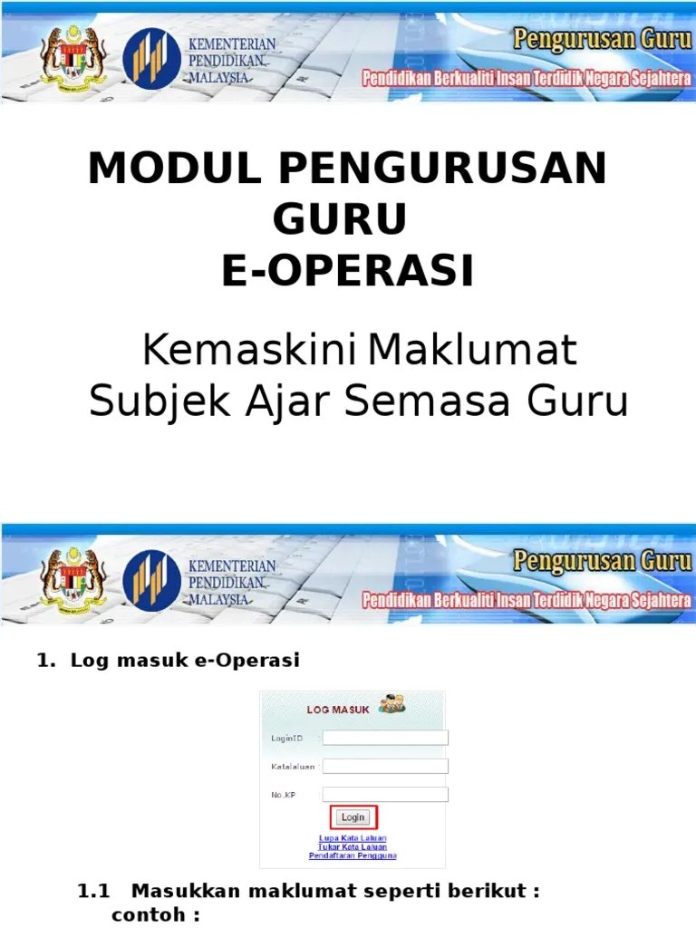 E-Operasi Kemaskini Maklumat Guru - Eoperasi Kpm Login Login Page / Ianya dibangunkan oleh bahagian pengurusan maklumat (bpm), kpm manakala bahagian pengurusan .